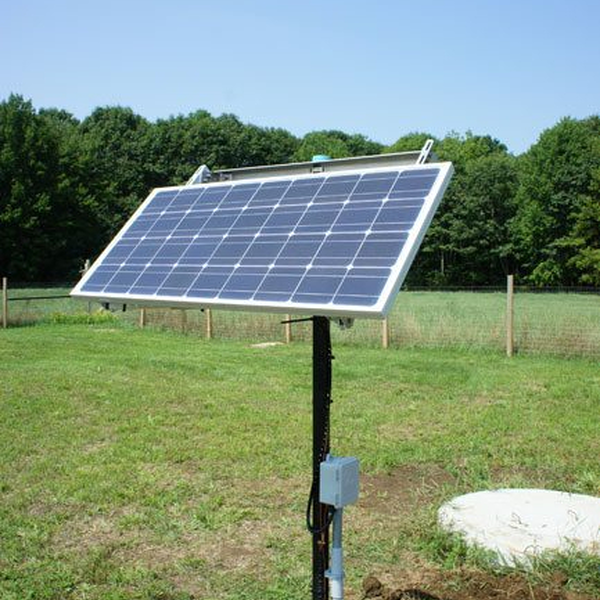 Sistem za pritrjevanje robustne jeklene pocinkane konstrukcije na solarni modul omogoča namestitev modula na kovinski ali leseni drog, pritrjen v tla.