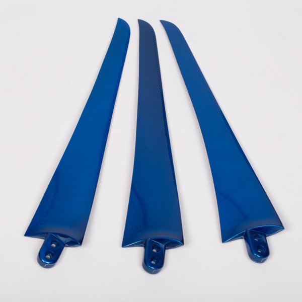 Ročno laminirana, UV odporna ogljikova rezila, uspešno preizkušena po DIN EN 61400-2 pri hitrosti orkana 122km / h (5480 vrt / min, s skoraj hitrostjo zvoka na konicah rezil).