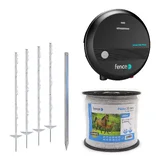 Komplet električne ograje, zasnovan za konje, ponije, osle, pse in govedo. Uporablja se lahko tudi za zaščito pred škodljivci in plenilci - zaščita pred kuno, vidro, podlasico, lisico, zajcem in zaščita pridelkov pred jelenjadjo. Z majhno električno ograjo lahko določite varen prostor za živali ali preprečite jim dostop do nezaželenih območij. Komplet vključuje pašni aparat, ki je s svojo močjo 2 J primeren za ograje do 15 km.